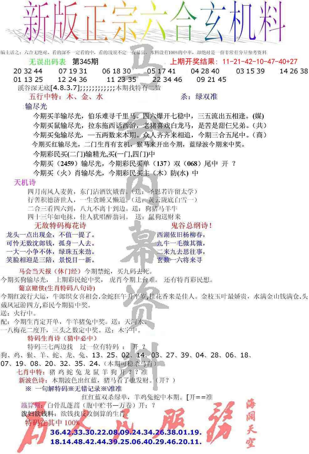 正宗六合玄机料